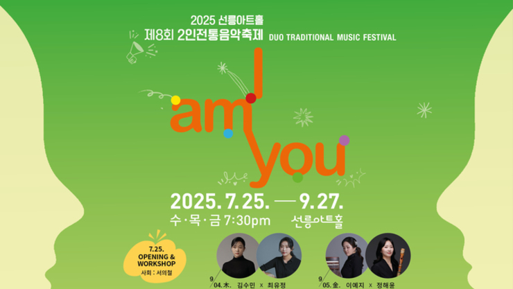 제8회 2인전통음악축제 [I am you], 젊은 국악인들의 무대… 창작과 도전의 장 성료 국악의 미래를 열어가는 젊은 예술가들의 창작 경연 무대가 막을 내렸다. 선릉아트홀이 주최·주관하고 지금풍류와 공동으로 진행한 제8회 2인전통음악축제 [I am you]가 지난 9월 27일 서울 선릉아트홀에서 종합 경연 [Finale & Contest]를 열고 3개월간의 여정을 마무리했다. 이번 축제는 3월 공개 모집을 거쳐 선발된 신진 국악인들이 7월 개막식을 시작으로 9월 한 달간 단체별 개별 공연을 선보이며 쌓아온 성과를 결산하는 무대였다. 결선에는 △박솔(판소리)X송아란(건반), △김효슬(경기민요)X송유민(피아노·트럼펫), △이예지(아쟁)X정해윤(대금), △김나영(거문고)X이주빈(해금), △권수현(해금)X임재인(가야금), △박규정(해금)X신현지(해금), △서정화(가야금)X이고은(가야금), △김수민(거문고)X최유정(타악) 등 8개 팀이 올랐다. 참가자들은 전통음악을 바탕으로 재즈·대중음악·현대적 사운드 아트까지 융합한 다양한 시도로 무대를 채웠으며, 객석에서는 추임새와 응원으로 무대와 관객이 함께 호흡하는 현장이 연출됐다. 축제의 또 다른 특징은 전문가와 관