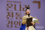 국립국악원 제19회 온나라 전통춤 경연대회 성료, 대통령상에 배우진, 전통춤 계승의 새 주역으로 국립국악원(원장 직무대리 강대금)은 지난 9월 25일(목) 서울 서초동 국립국악원 우면당에서 제19회 온나라 전통춤 경연대회 본선과 시상식을 개최했다. 이날 영예의 최우수상인 대통령상은 태평무를 춘 배우진(29세, 이화여자대학교 교육대학원 수료) 씨가 차지했다. 금상인 국무총리상은 춘앵전을 선보인 노경은(24세, 중앙대학교 졸업) 씨에게 돌아갔다. 배우진 씨는 수상 소감을 통해 “국립국악원 우면당 무대에 홀로 설 수 있다는 것만으로도 큰 영광인데, 이렇게 뜻깊은 상까지 주셔서 앞으로 더 정진하라는 의미로 받아들이겠다”며 “응원해 주신 선생님들과 부모님께 감사드리며 전통춤의 올바른 전승자가 되겠다”고 밝혔다. 강대금 국립국악원장 직무대리는 “온나라 전통춤 경연대회는 궁중춤을 포함해 한국 전통춤의 보존과 전승, 인재 발굴을 이끌어온 대표 무대”라며, “특히 작년 「국악진흥법」 시행과 올해 첫 ‘국악의 날’을 맞아 많은 인재가 열의를 갖고 참가해줘 감사하다”고 말했다. 온나라 전통춤 경연대회는 1981년 국악경연대회 무용부문으로 출발해 2006년 독립했으며, 국내 유일