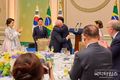 국악타임즈 편집부 | 이재명 대통령 부부는 23일 저녁, 국빈 방한 중인 룰라 다 시우바 대통령 부부와 브라질 대표단을 청와대 영빈관으로 초청해 만찬을 함께 했다. 만찬에는 강훈식 비서실장과 위성락 국가안보실장, 김용범 정책실장 등 청와대 참모들과 구윤철 부총리 겸 재정경제부 장관, 배경훈 부총리 겸 과학기술정보통신부 장관 등 정부 인사들, 제22대 국회 한-브 의원 친선협회 협회장인 박정 의원 등 정계인사들과 이재용 삼성그룹 회장, 최태원 SK그룹 회장, 구광모 LG그룹 회장, 정의선 현대차그룹 회장, 한국경영자총협회장을 맡고 있는 손경식 CJ그룹 회장 등 재계 인사들, 세징야 대구 FC 축구선수, 이승연 화가 등 학계와 문화계, 친선협회 인사들 120여 명이 참석했다. 이재명 대통령은 만찬사를 통해 소년공 시절을 회고하면서 “몸으로 배운 노동의 가치와 인간의 존엄성은 더 나은 세상을 바라는 열망의 원동력이 됐다”고 언급했다. 이어 “비슷한 삶의 궤적을 공유하고 있었기에 룰라 대통령님을 처음 만났을 때부터 마치 오랜 친구를, 또 동지를 만난 것처럼 무척이나 반가웠다”고 전했다. 또한 삼성, LG, 현대 자동차를 언급하면서 “자랑스러운 우리 기업들도 양국 관
