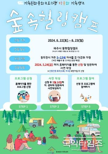국악타임즈 송혜근 기자 | 동두천시가족센터는 다문화 가족 캠프 ‘숲속 힐링캠프’ 참여자를 5월 24일까지 모집한다고 밝혔다.