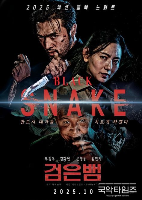 국악타임즈 편집부 | 하드보일드 액션 느와르 '검은뱀'이 오는 10월 극장 개봉 확정과 함께 강렬한 메인 포스터를 전격 공개했다.[감독 : 박도환 | 출연 : 부정우, 김화인, 문영동, 김민기, 기주봉 외 | 제작 : 케이스타 | 배급 : ㈜이놀미디어]