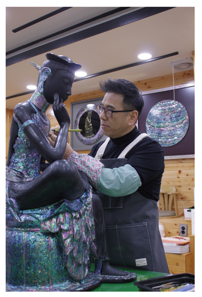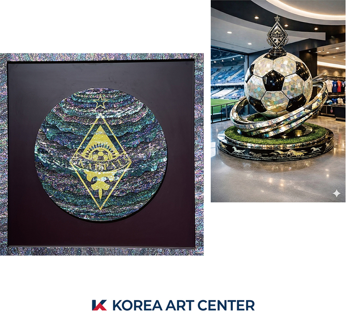 특히 최근 KOREA ART CENTER와의 협업으로 완성된 FC 카이라트 엠블럼 프로젝트는 주목할 만하다. 카자흐스탄을 대표하는 명문 구단의 상징이 자개의 빛으로 재탄생한 이 작업은 시간과 문화와 인간의 의지가 응축된 하나의 조형 예술로 완성되었다. 이 작품은 현지에 영구 소장되며 한국 전통 공예의 새로운 가능성을 세계 무대에 각인시키게 된다.
