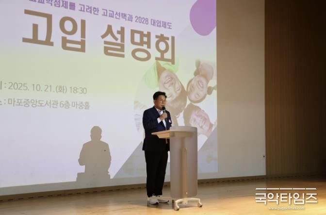 국악타임즈 편집부 | 마포구는 10월 21일 오후 6시 30분, 마포중앙도서관 6층 마중홀에서 변화하는 교육과정과 복잡한 입시 제도로 어려움을 겪고 있는 관내 학생 및 학부모들에게 유용한 정보를 제공하고자 ‘2026학년도 고입설명회’를 개최했다.