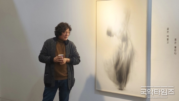 한국 전통춤이 지닌 신명은 흔히 폭발의 언어로 오해되어 왔다. 그러나 양재문에게 신명은 터뜨리는 감정이 아니라, 오래 눌러 담아두었다가 스스로 울리게 하는 시간의 진동에 가깝다. 이 지점에서 그의 작업은 라캉이 말한 ‘표출되지 않는 욕망’의 방식과 닮아 있다. 욕망은 언제나 즉각적으로 드러나지 않으며, 말해지기보다는 어긋난 형태로, 잔향처럼 남는다. 개인전 ‘動靜–삶은 머물고, 몸은 울린다’는 1994년 ‘풀빛여행’에서 2025년 ‘비감소월’에 이르기까지, 삼십여 년 동안 축적된 신명의 결을 한 공간에 병치함으로써, 욕망이 어떻게 몸과 사물 속에서 지연되고 변형되어 나타나는지를 보여준다. 이 전시는 움직임과 고요를 대비시키는 자리가 아니라, 둘이 같은 결여의 다른 표정임을 드러내는 자리다.