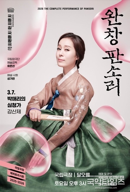 국립극장(극장장 박인건) 전속단체 국립창극단(예술감독 겸 단장 유은선)이 3월 7일 토요일 오후 3시, 국립극장 달오름극장에서 2025-2026 레퍼토리시즌 <완창판소리> 3월 공연으로 〈박애리의 심청가 – 강산제〉를 선보인다.