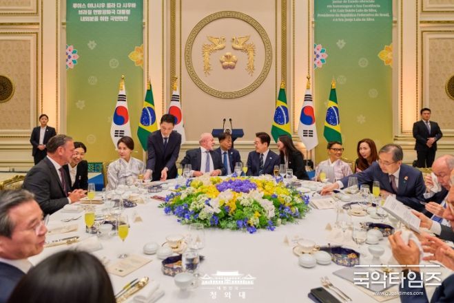 국악타임즈 편집부 | 이재명 대통령 부부는 23일 저녁, 국빈 방한 중인 룰라 다 시우바 대통령 부부와 브라질 대표단을 청와대 영빈관으로 초청해 만찬을 함께 했다.