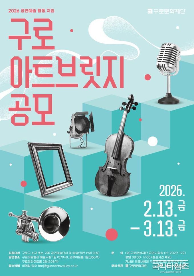 국악타임즈 편집부 | (재)구로문화재단(대표이사 정연보)은 지역 예술인의 창작 활동을 지원하고 구로구의 문화예술 생태계 확장을 위한 2026 공연예술 활동 지원 [구로 아트브릿지] 공모를 실시한다.