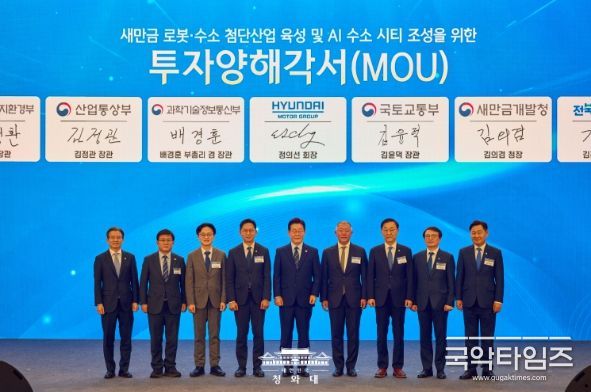 국악타임즈 편집부 | 이재명 대통령은 27일 새만금 로봇·수소·AI 시티 투자 협약식에 참석해 "현대자동차그룹의 혁신 역량 그리고 풍부한 자원이 합쳐진다면 새만금은 최적의 시너지를 발휘하는 기회의 땅이 될 수 있을 것으로 믿는다"고 밝혔다.