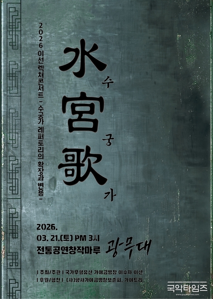 국가무형유산 가야금병창 이수자 이선이 오는 3월 21일 오후 3시 전통공연창작마루 광무대에서 렉쳐콘서트 〈수궁가〉를 개최한다.