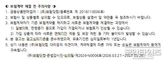 보다 자세한 가입 조건이나 적정 진단금액 설정은 비갱신형 암보험 비교사이트를 활용하여 여러 회사의 상품을 실시간으로 보험료 비교도 해볼 수 있으며, 다양한 정보를 비대면으로 주말까지 전문가와 상담이 가능하므로 3대진단비 등 종합건강보험 가입 시 편리하게 이용할 수 있다.