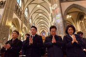 국악타임즈 편집부 | 이재명 대통령과 김혜경 여사가 25일 서울 중구 명동대성당에서 열린 성탄 대축일 미사에서 기도를 하고 있다.