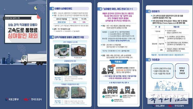 이는 지난해 유료도로법 시행령 개정(2020.12.29)에 따른 것으로 과적·적재불량 등 법규 위반행위로 인해 도로파손과 교통사고 등이 지속 발생함에 따라 도로교통 안전을 강화하기 위한 것이다.