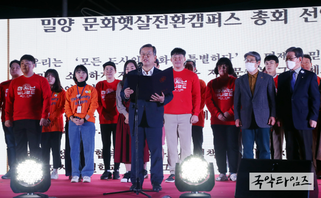 지난 11월 1일, 밀양대 강당에서 문화도시 현장실사를 실시해 심의위원들의 마음을 사로잡았으며, 11월 5일부터 7일까지 열렸던 밀양대 페스타를 통해 문화공간에 대한 시민의 기대와 요구를 여실히 보여줬다.