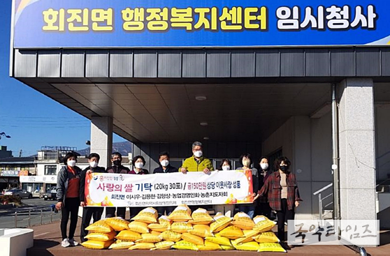 국악타임즈 황원일 기자 | 장흥군 회진면 행정복지센터는 지난 7일 이웃돕기 ‘사랑의 쌀’ 기탁식을 가졌다고 전했다.