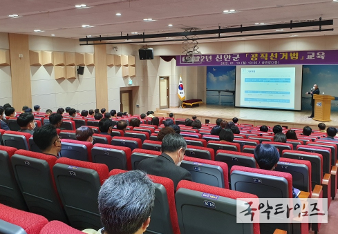 국악타임즈 황원일 기자 | 신안군은 1월 10일 제20대 대통령선거와 제8회 전국동시지방선거의 공명선거 추진을 위하여 공직자를 대상으로‘공무원이 알아야할 공직선거법’에 대한 교육을 현장 및 온라인으로 실시하였다.