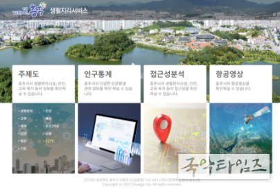 국악타임즈 황원일 기자 | 충주시는 연도별 항공사진과 시민들의 생활에 밀접한 다양한 행정정보를 한눈에 볼 수 있는 생활지리서비스를 제공한다고 11일 밝혔다.