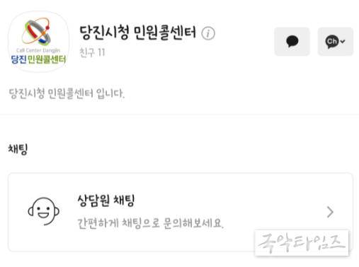 국악타임즈 황원일 기자 | 당진시가 12일부터 당진시 민원콜센터에서 하는 각종 전화 민원 상담을 카카오톡 채팅으로도 할 수 있는 상담서비스를 3개월간 시범 운영한다고 11일 밝혔다.