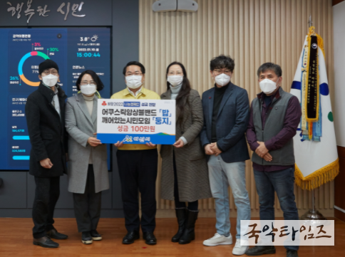 국악타임즈 황원일 기자 | 어쿠스틱 앙상블 밴드 ‘밥’ 깨어있는 시민모임 ‘둥지’가 지난 10일 아산시를 방문해 ‘희망2022나눔캠페인’ 성금 100만원을 기부했다.