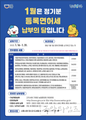 이와 관련해 시 관계자는 “영업을 하지 않을 경우 사업주는 반드시 해당 인·허가부서에 폐업신고를 해야 하며, 납부 기한 이후에 납부할 경우 3%의 가산금이 부과되고 납부할 세액이 30만 원 이상인 경우에는 매월 0.75%씩 60개월 동안 중가산금도 부과될 수 있으니 기한 내 납부할 것”을 당부했다.