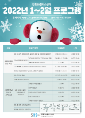 국악타임즈 황원일 기자 | 강동구가 운영하는 ‘강동50플러스센터’에서 새해맞이 무료특강을 연다.