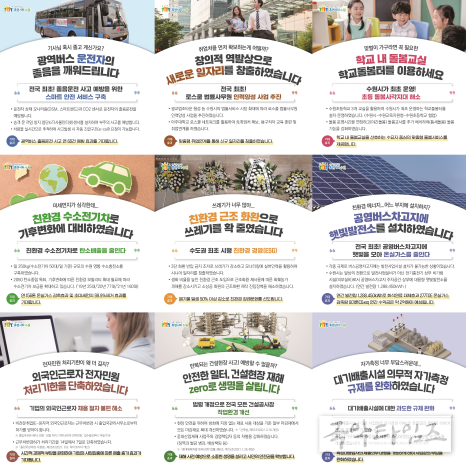 또 ▲친환경 수소전기차로 탄소배출 줄인다(수원영통 수소충전소 구축) ▲수도권 최초 시행 친환경 경영 ESG(수원시 연화장 장례식장에 친환경 근조(謹弔)화환 도입) ▲전국 최초! 공영버스차고지에 햇빛을 모아 온실가스 줄인다(동부버스공영차고지에 대용량 햇빛발전소 설치) 등이 있다.