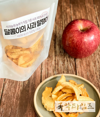 새콤달콤 사과말랭이는 청양에서 생산된 사과 100% 제품으로 어린이나 어르신들이 간편하게 즐길 수 있는 영양간식이다. 이 제품 또한 종합가공센터 가공시설에서 전처리와 건조과정을 통해 상품화됐다.