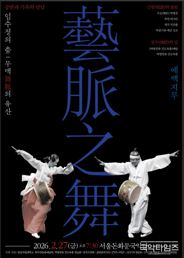 이어 2부 ‘전수의 길’에서는 신간 『박병천류 진도북춤』 출판 기념 대담이 진행된 뒤, 박병천류 진도북춤이 펼쳐진다. 스승의 예술을 기록으로 정리하고 다시 몸으로 구현하는 이 흐름은, ‘근원’에서 ‘전수’로 이어지는 무맥(舞脈)의 여정을 무대 위에 선명하게 그려낼 예정이다.