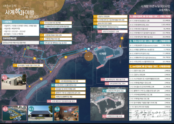 해양수산부의 국책사업인 어촌뉴딜300사업은 낙후된 선착장 등 어촌의 필수 기반시설을 현대화하고, 지역 특성에 맞는 특화개발을 추진에 지역경제에 활력을 불어넣는 지역밀착형 생활SOC사업이다.