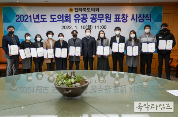 국악타임즈 황원일 기자 | 전라북도의회는 10일 도의회 의장실에서 의정 발전 및 지역사회 발전에 공헌한 유공자 18명에게 표창을 수여했다.