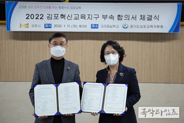 국악타임즈 황원일 기자 | 11일 김포시가 김포교육지원청과 2022년 김포혁신교육지구 부속합의서를 체결하고 올해 3월부터 시작하는 혁신교육지구 사업의 시작을 알렸다.