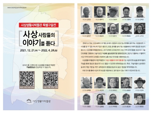 부산 사상구는 오는 4월 24일까지 사상생활사박물관 3층 전시실에서 '사상 사람들의 이야기를 듣다' 특별구술 전시를 진행한다고 밝혔다.