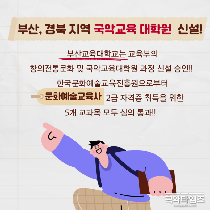 [단독] 부산교육대 국악교육 대학원 신설 교육부 승인, 동시에 교육대 대학원 최초! 문화예술교육사 5개 교과목 모두 인정받아