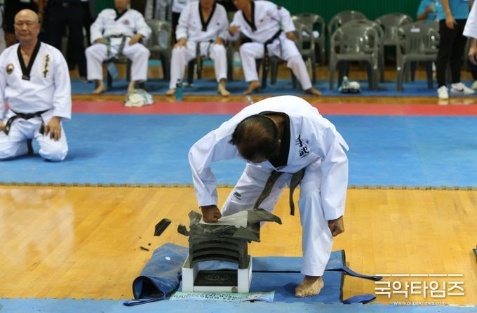 한마당 셋째 날인 7월 28일 위력격파 고수들이 참가한 국내 주먹격파 시니어 Ⅲ(남자) 부문에서 10위로 간신히 예선을 통과한 정 사범은 결선에서 기왓장 15장을 완파하는 기염을 토하며 최종 우승을 차지했다.