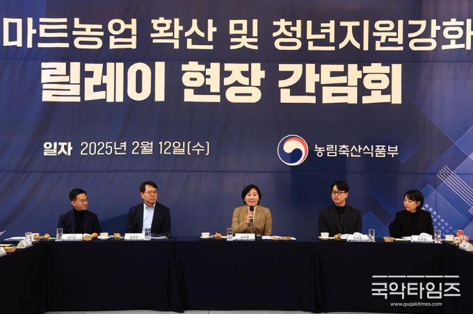 이어진 간담회에는 농식품부 송미령 장관을 비롯해, 한국농업기술진흥원, 농어촌공사 등 유관기관, 스마트농업 종사자 및 청년농업인, 전후방 산업 기업인 등 약 20명이 참석했으며, 청년농업인의 창업과 영농정착, 전후방 농산업 기업을 위한 정책 방향이 논의됐다.