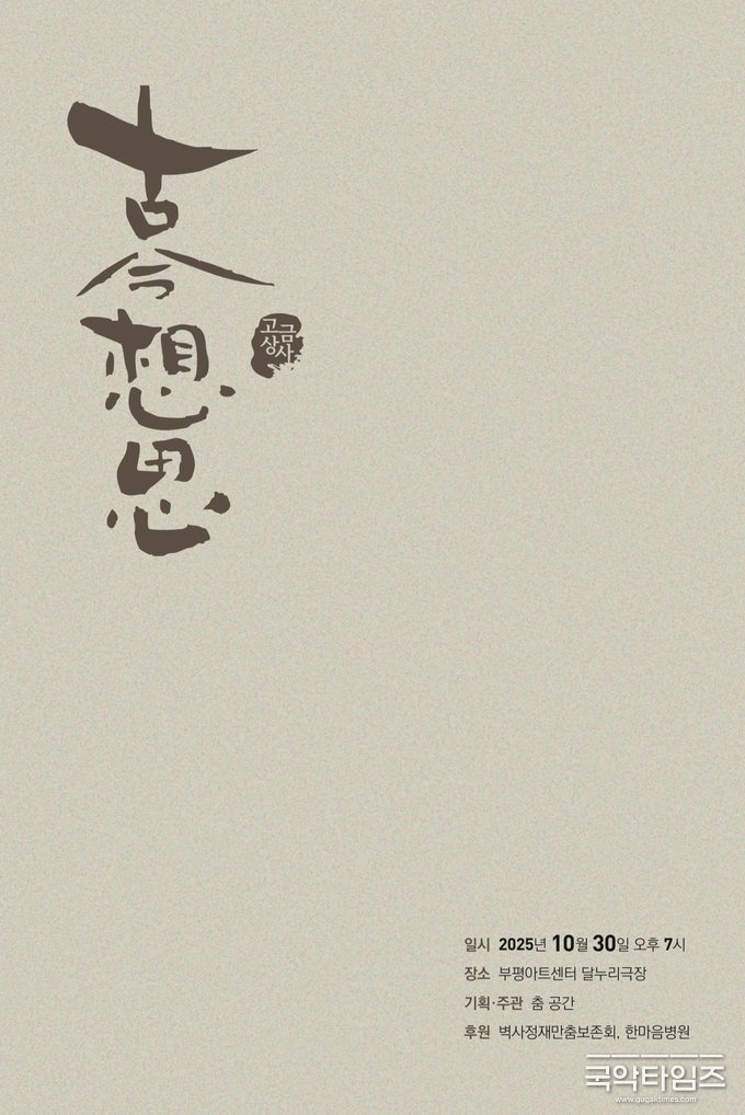 오는 2025년 10월 30일 오후 7시, 부평아트센터 달누리극장에서 춤 공간의 기획·주관으로 무용 공연 ‘고금상사(古今想思)’가 열린다. 이번 공연은 벽사사정재만춤보존회와 한마음병원의 후원으로 마련되며, 전통춤의 정신을 오늘의 무대 위에 되살려 과거와 현재를 잇는 예술적 사유의 장이 될 예정이다.