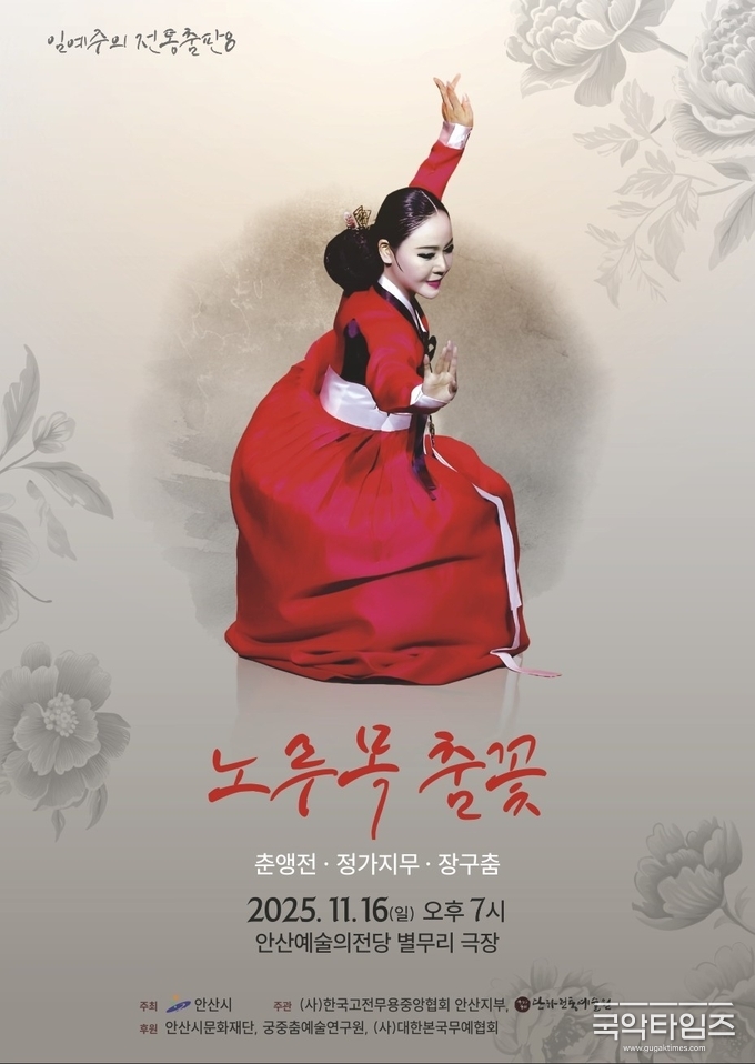 안산의 땅과 역사 속에 스며 있는 전통예술의 결을 되살리는 무대가 마련된다. (사)한국고전무용중앙협회 안산지부와 단하전통예술원이 주관하는 2025 임예주의 전통춤판Ⅷ ‘노루목 춤꽃Ⅰ’ 공연이 오는 2025년 11월 16일 오후 7시, 안산예술의전당 별무리극장에서 열린다.
