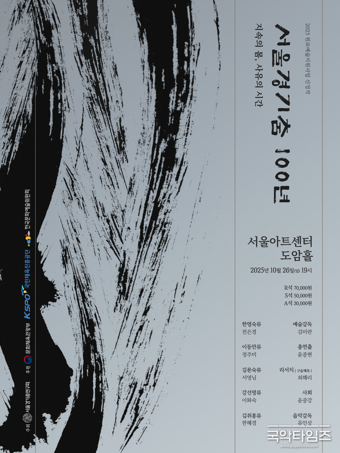 서울경기춤연구회(이사장 김미란, 예술감독)가 지난 10월 26일 서울아트센터 도암홀에서 ‘서울 경기 춤 100년 – 지속의 몸, 사유의 시간’을 개최했다. 서울·경기 춤을 지탱해 온 명무 다섯 명이 한 무대에 올랐다는 사실만으로도 역사적 의미가 충분했지만, 이 공연은 단지 전승된 춤을 보여주는 데 그치지 않았다.