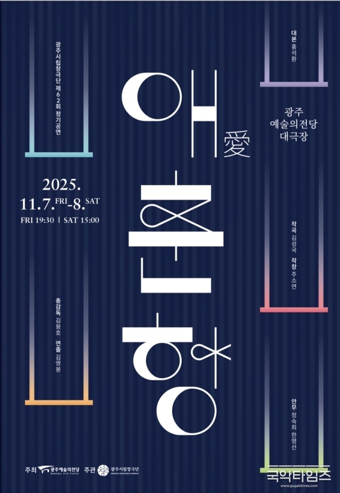 1989년 창단된 광주시립창극단은 판소리의 성지 예향(藝鄕) 광주의 문화적 뿌리를 이어온 예술단체다. 〈쑥대머리〉, 〈안중근〉, 〈이순신〉 등 굵직한 창작창극을 선보이며, 전통예술의 계승과 발전을 통해 국악의 대중화·현대화에 기여해왔다. 이번 정기공연 〈애(愛)춘향〉 또한 전통 창극의 정통성과 현대적 감수성을 잇는 대표적 시도로 평가된다.