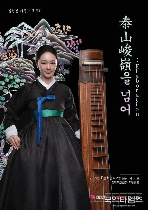 부산의 젊은 거문고 연주자 김현경이 여섯 번째 독주회 〈태산준령을 넘어 : Elaboration〉를 오는 11월 6일(목) 오후 7시 30분 금정문화회관 은빛샘홀에서 개최한다. 이번 공연은 부산광역시와 부산문화재단의 후원으로 마련되었으며, 전통과 현대, 학문과 현장이 조화된 김현경의 음악적 여정을 보여주는 무대가 될 예정이다.