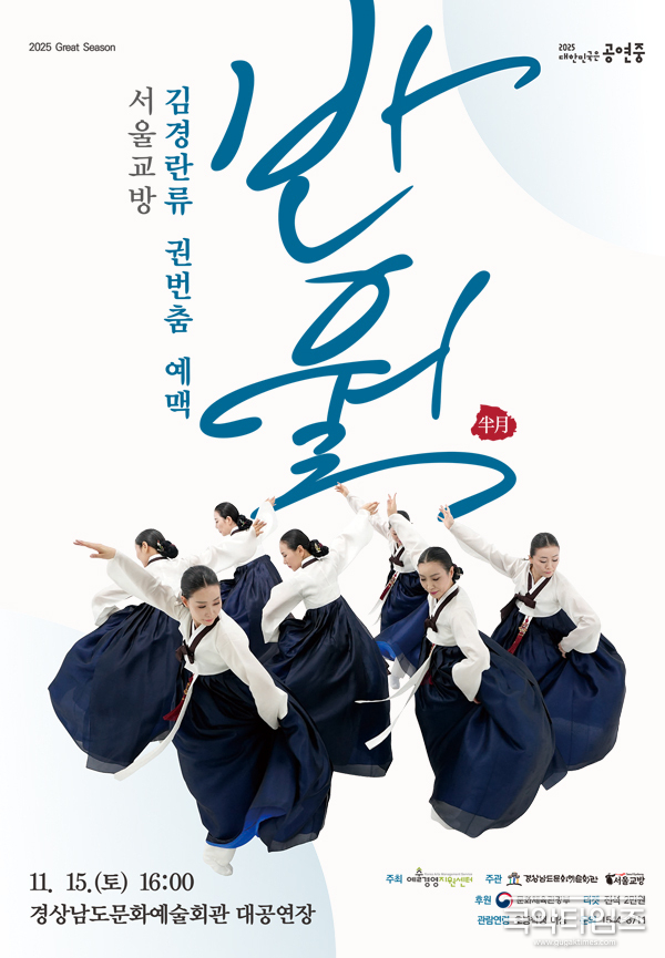 서울교방(대표 김경란)이 전통춤의 정수와 현대적 감성을 잇는 새로운 무대를 선보인다. 오는 11월 15일(토) 오후 4시, 경상남도문화예술회관 대공연장에서 열리는 〈김경란류 권번춤 예맥: 반월(弁月)〉은 오랜 시간 이어온 전통의 형식 속에 인간의 회복과 치유의 의미를 담은 무대로, 전통예술이 지닌 따뜻한 생명력을 일깨운다.
