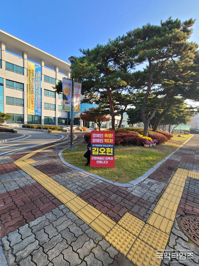 2025년 10월 17일 진도군청은 2026년 진도군립예술단 예술감독 채용 공고를 했다. 진도군립민속예술단 장애인 단원 한홍수는 진도군립민속예술단 전 감독 “김오현”이 2026년 새 감독으로 선출되는 것을 막고자, 11월 7일 진도군청 앞마당에서 <장애인 폭행!• 장애인 학대! 국가문화재 전승교육사 김오현 군립예술단 감독은 안 됩니다.> 1인 피켓 시위를 시작했다.