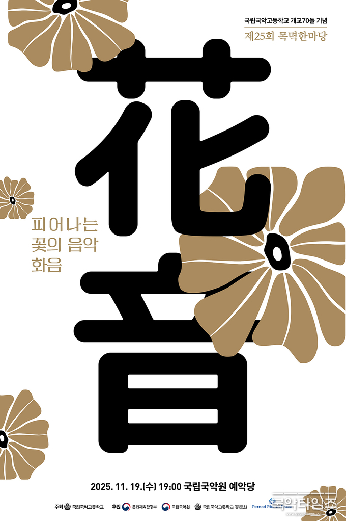 대한민국 국악 교육의 산실인 국립국악고등학교(교장 모정미)가 개교 70돌을 맞아 오는 11월 19일(수) 오후 7시, 국립국악원 예악당에서 제25회 목멱한마당 〈피어나는 꽃의 음악 : 화음(花音)〉을 개최한다.
