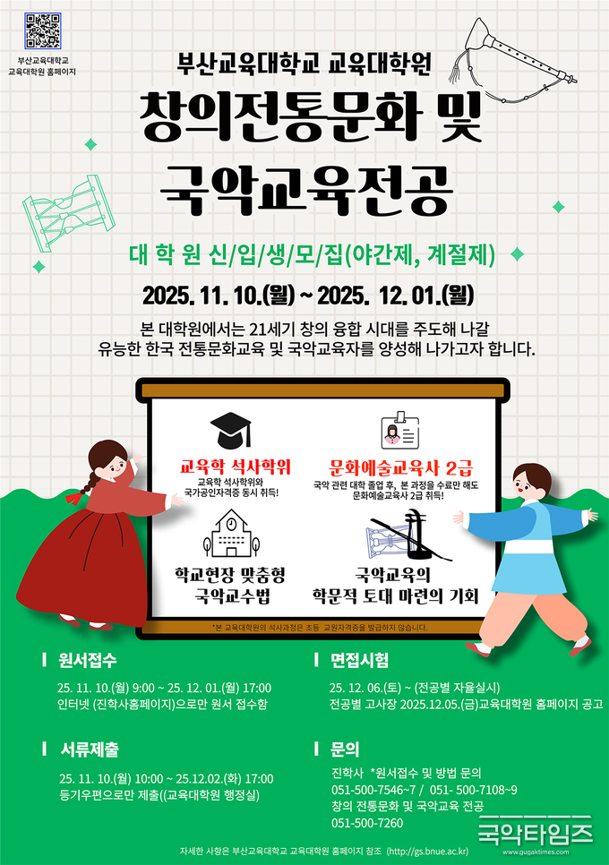 유능한 국악교육자 양성을 위한 부산교육대학교 교육대학원, 2025 신입생 모집