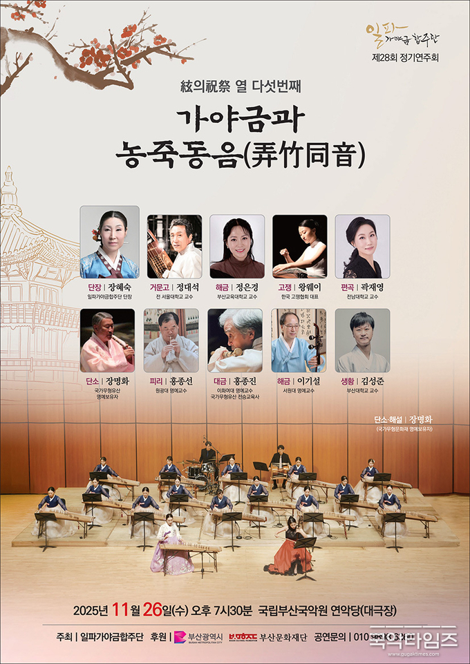 부산·영남 지역 최초의 가야금 전문 연주단체인 일파가야금합주단(단장 장혜숙)이 오는 11월 26일(수) 오후 7시 30분, 국립부산국악원 연악당에서 제28회 정기연주회를 개최한다.