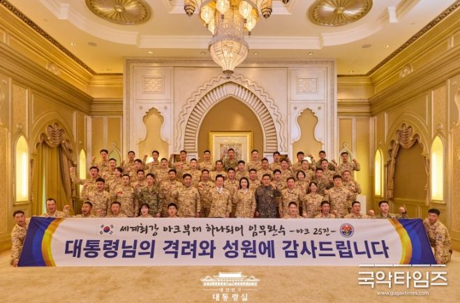 국악타임즈 편집부 | 아랍에미리트연합(UAE)를 국빈 방문 중인 이재명 대통령 부부는 19일(현지시간) 아크부대의 부대원 50명을 아부다비로 초청해 격려했다.