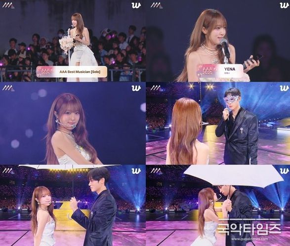 국악타임즈 편집부 | 가수 최예나(YENA)가 'AAA' 베스트 뮤지션 상을 수상, 추영우와 설렘 퍼포먼스로 존재감을 드러냈다.