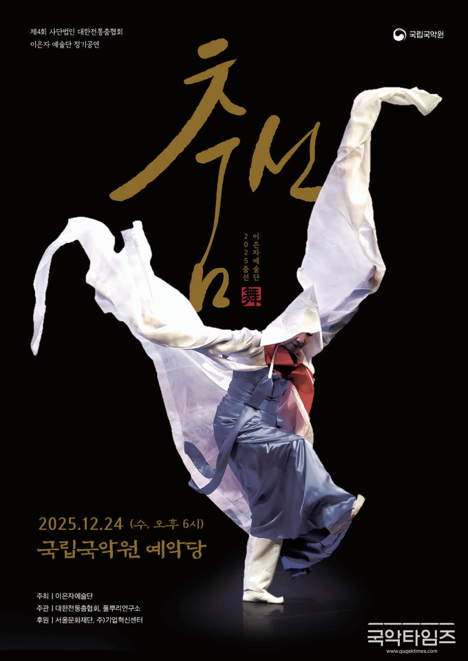 사단법인 대한전통춤협회 이은자 예술단이 오는 12월 24일 오후 6시, 국립국악원 예악당에서 송년 정기공연 ‘춤선’을 무대에 올린다. 깊어가는 겨울, 우리 춤사위에 스며 있는 흥과 선(善)의 아름다움을 무대에서 피워 올리며 한 해의 끝자락을 환하게 밝히는 시간을 마련했다.
