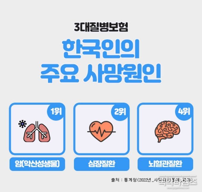 국악타임즈 편집부 | 3대질병으로 일컬어지는 암, 뇌혈관질환, 심혈관질환은 한국인의 주요 사망원인에서 상위를 차지하고 있으며, 이에 대한 진단비를 집중적으로 보장해 주는 보험상품을 3대질병진단비 보험이라 할 수 있다.