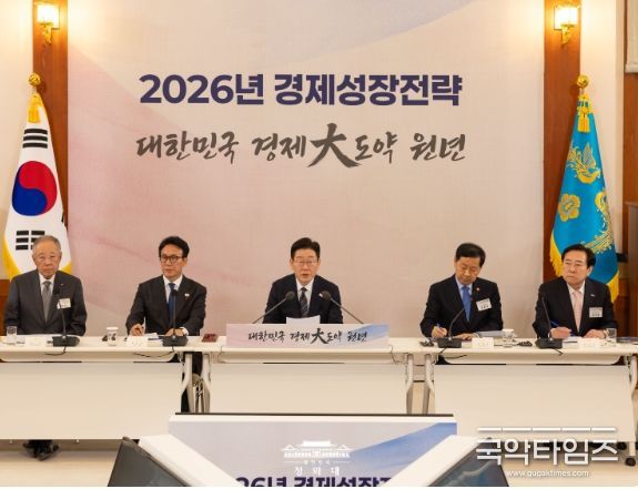 이 대통령은 이날 오후 청와대에서 '2026년 경제성장전략 국민보고회'를 주재하고 "올해 모든 분야에서 성장을 이뤄내는 대한민국 대도약의 원년이 돼야 한다"며 이같이 밝혔다.