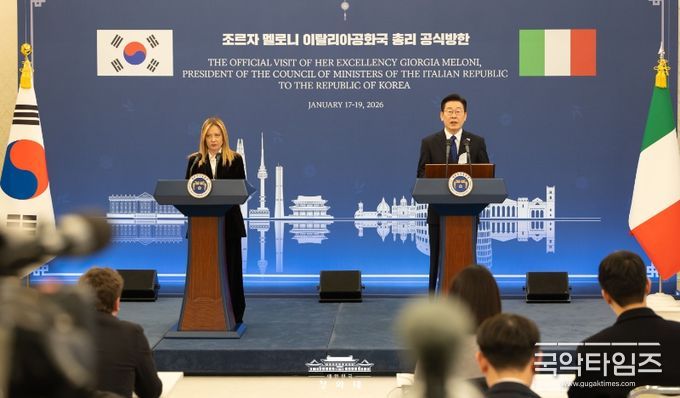 국악타임즈 편집부 | 이재명 대통령은 19일 조르자 멜로니 이탈리아 총리와의 정상회담 뒤 "저와 멜로니 총리는 전략적 동반자 명칭에 부합하는 미래지향적 수준으로 양국 관계를 더욱 발전시켜 나가기로 합의했다"고 밝혔다.